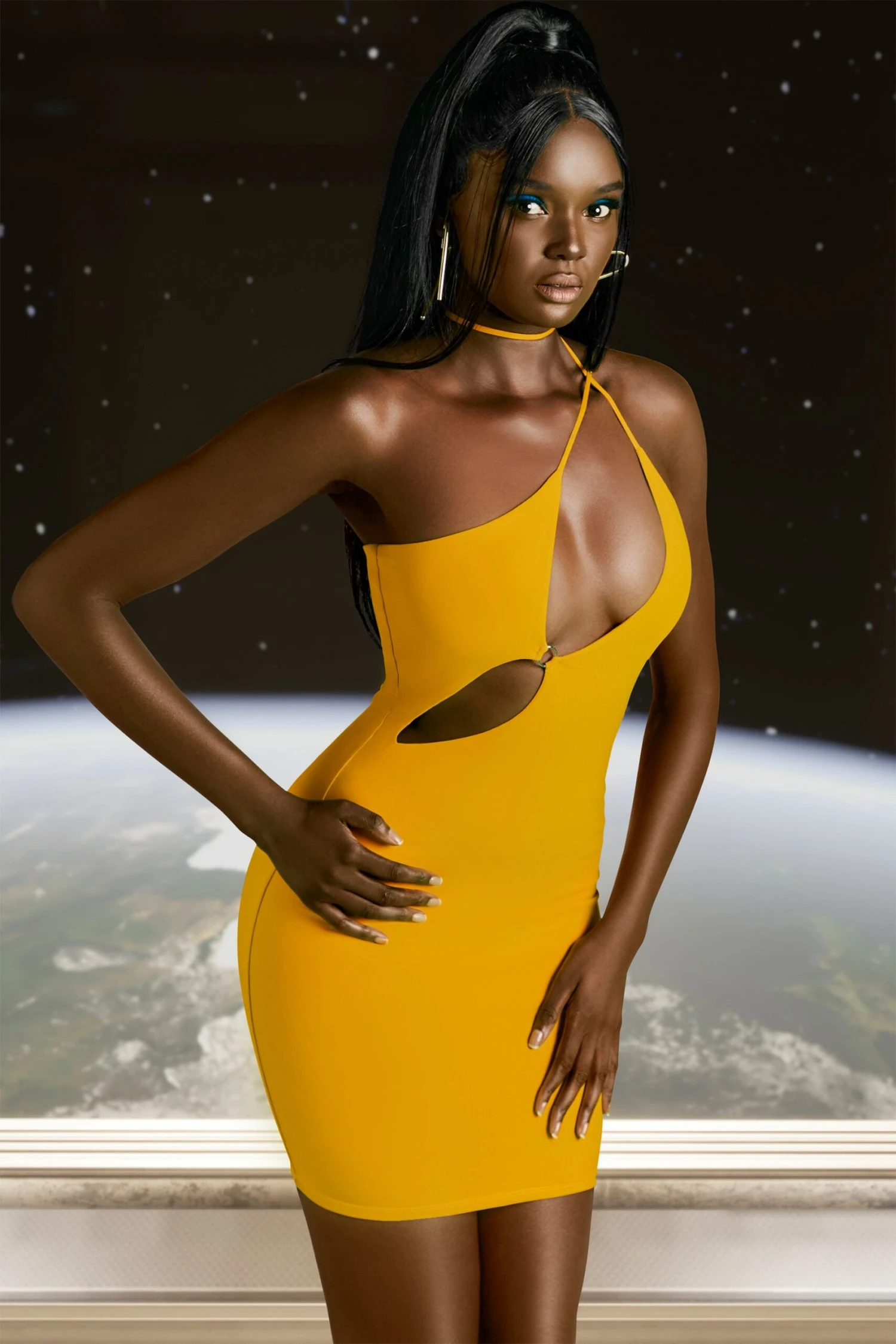 Make our mini dress your biggest flex this season. Flex On You features soft mesh fabric in a figure-enhancing bodycon fit to elevate your curves. Designed with cascading asymmetric cut out and ring detailing, we’re elevating your weekend style to a galactic level. Pair this with strappy heels and your favourite hoop earrings for a look that demands attention.