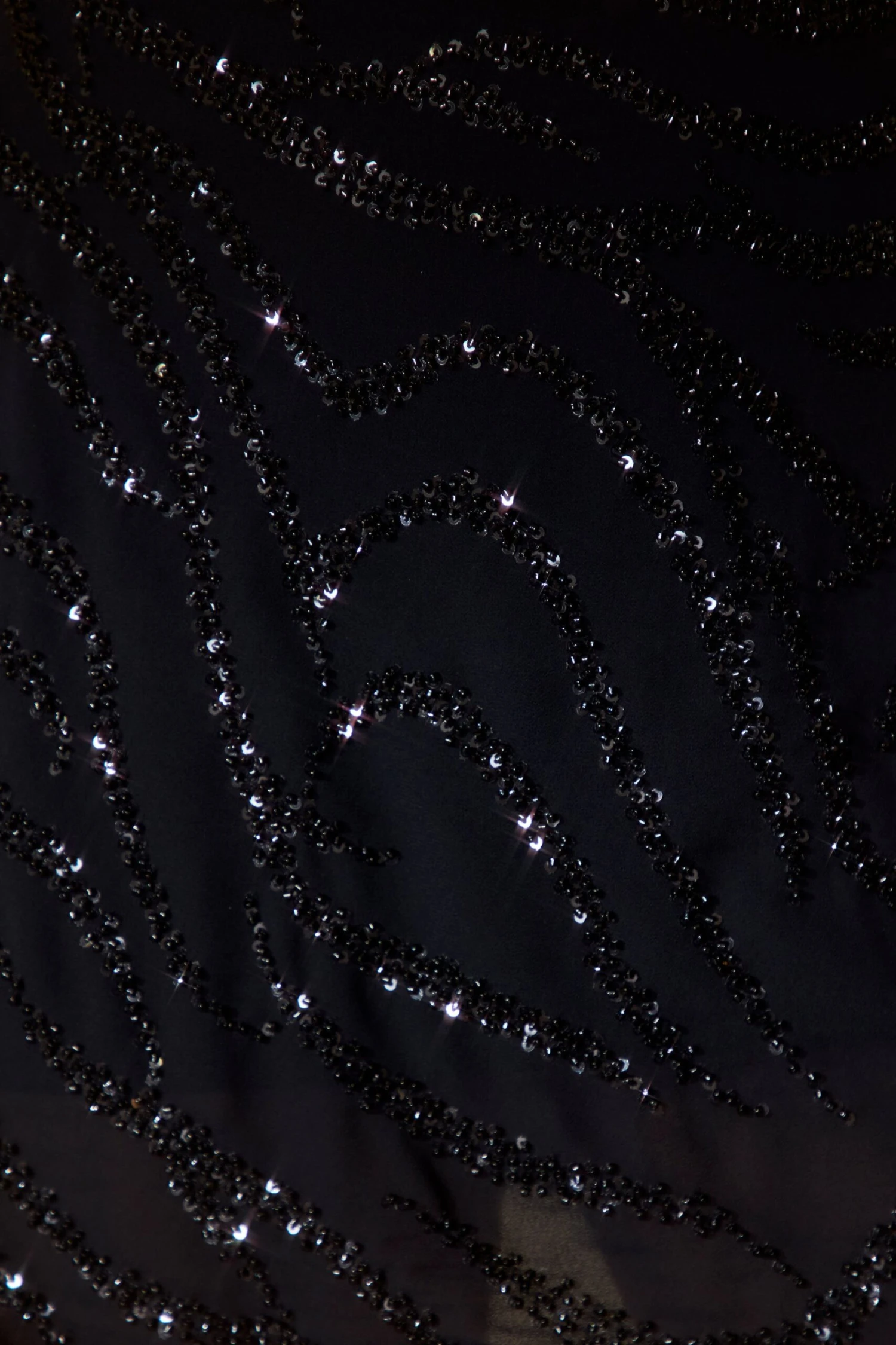 Delicate embellishment and beaded tassels give this classic bralet shape a vintage inspired twist. The ultimate party piece, the Vaira bralet is cut from our premium georgette fabric and embellished with pretty beading that sparkles under dance floor spotlights. The classic triangle shape is both bust flattering and sexy with beading fringing that cascades against your exposed waist. Ensuring the wearer exudes a playful confidence wherever the evening leads you, the Vaira bralet is a partywear essential.