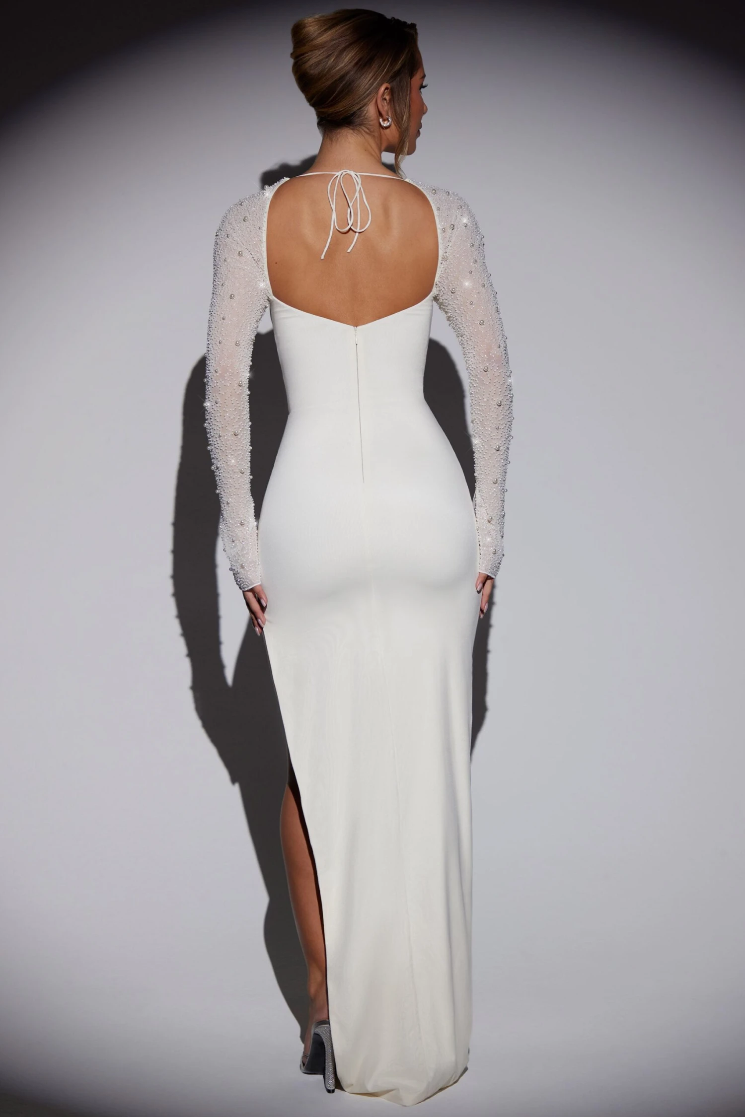 Embellished Side Split Maxi Dress In White