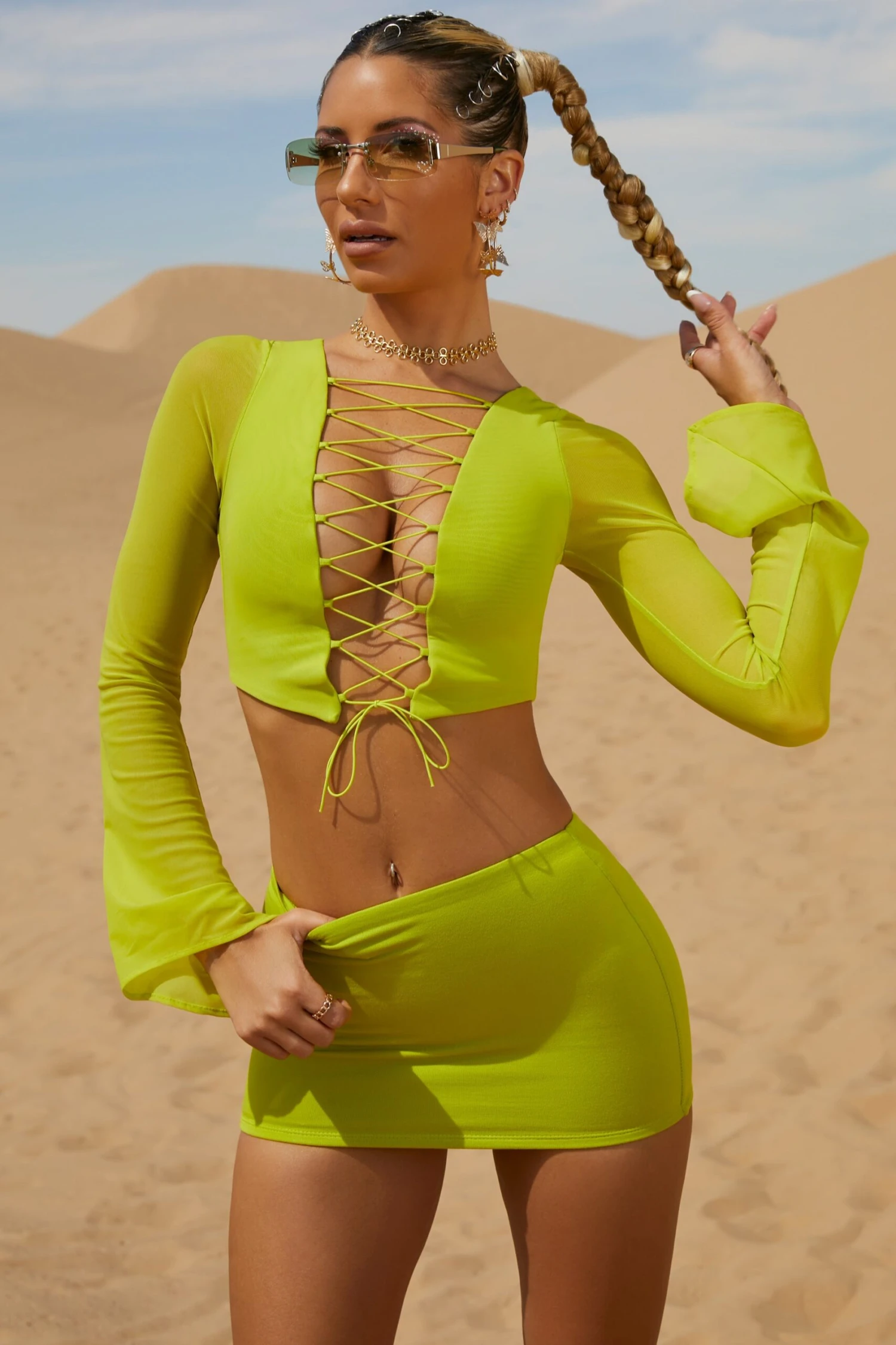 This summer, get Riverside in your festival line up. Made with long, mesh sleeves that have flared hems, the front has lace up detailing with a self tie to tighten or loosen however you like. Pair with a micro mini and dance all night.