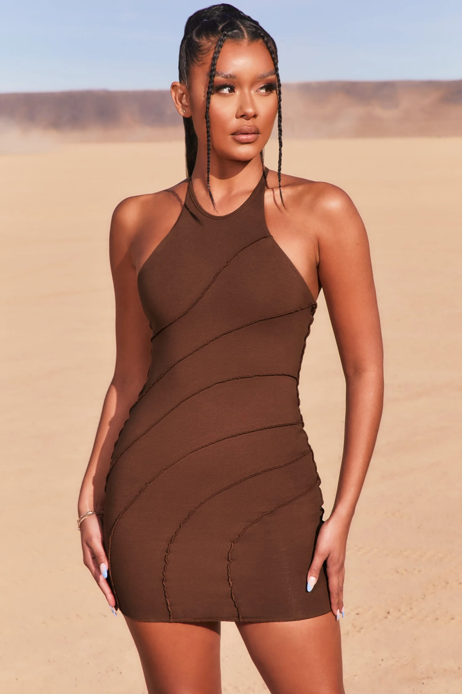 Add a fresh new fit to your dress collection with New Cut petite mini dress. Designed in premium stretch cotton for a super-soft silhouette that follows your curves, our bodycon dress features a racer style halter neckline and edgy exposed seam detailing. In with the new, babe.