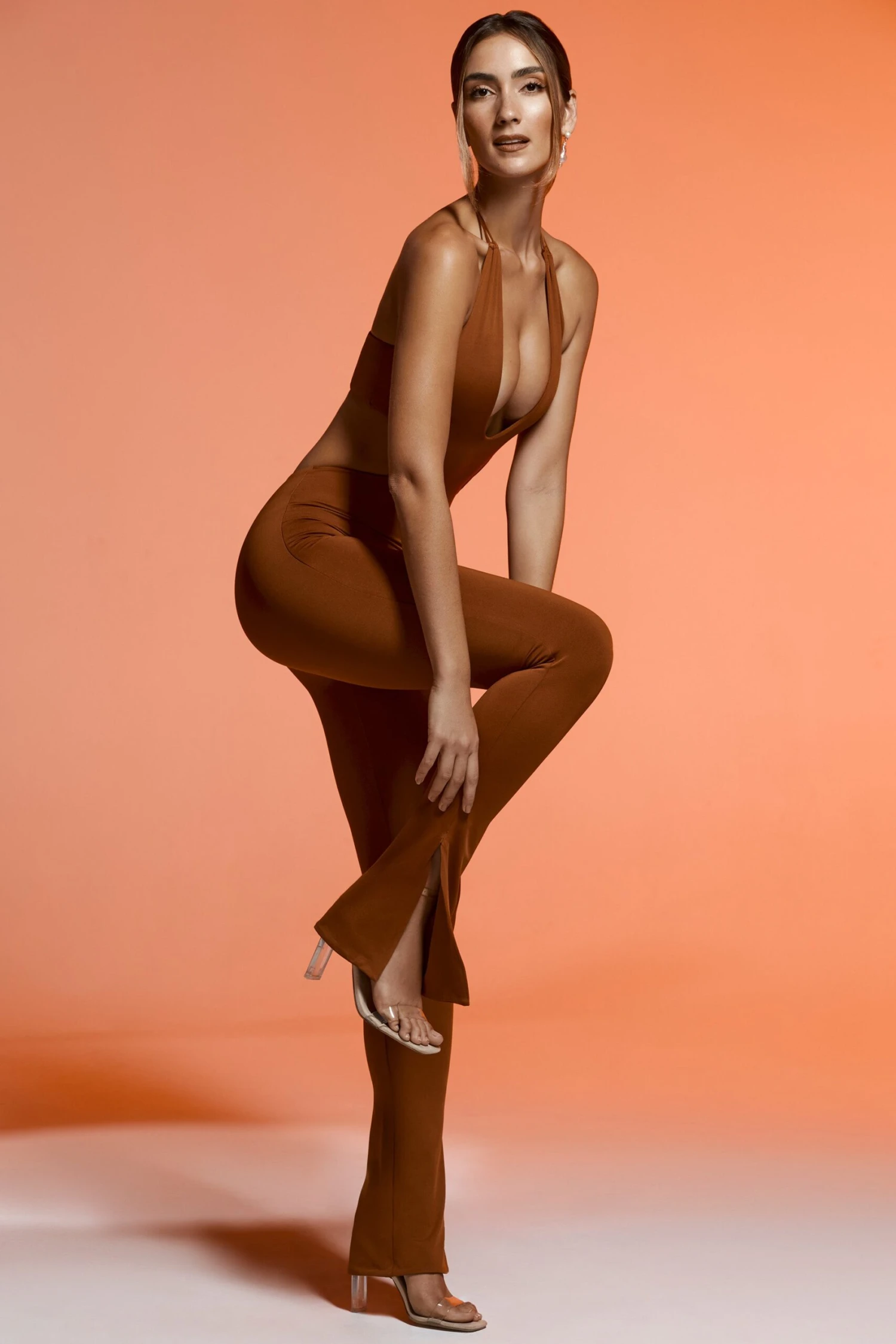 Ready for something new? The stand out style of the season reinvented for party season has arrived. Arjana is designed in our premium jersey fabric that’s dual layered for a comfortable and flattering fit. Full length with on-trend split flare trousers, Arjana is complete with a daring plunge neckline with halter neck fastening and a statement cut out back that stretches along to the sides. Perfect for making a statement at your next party, we know you’ll love this super on trend jumpsuit.