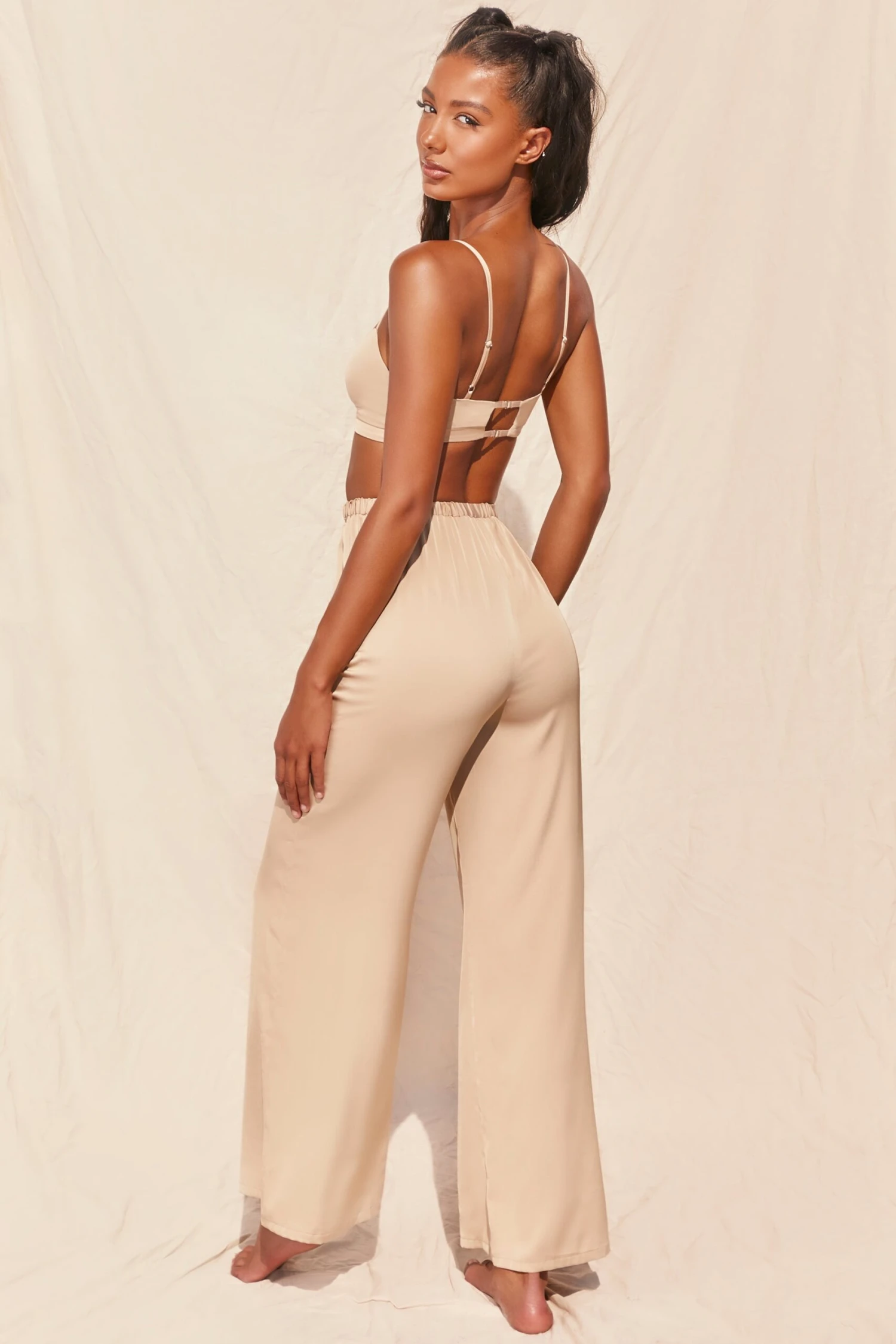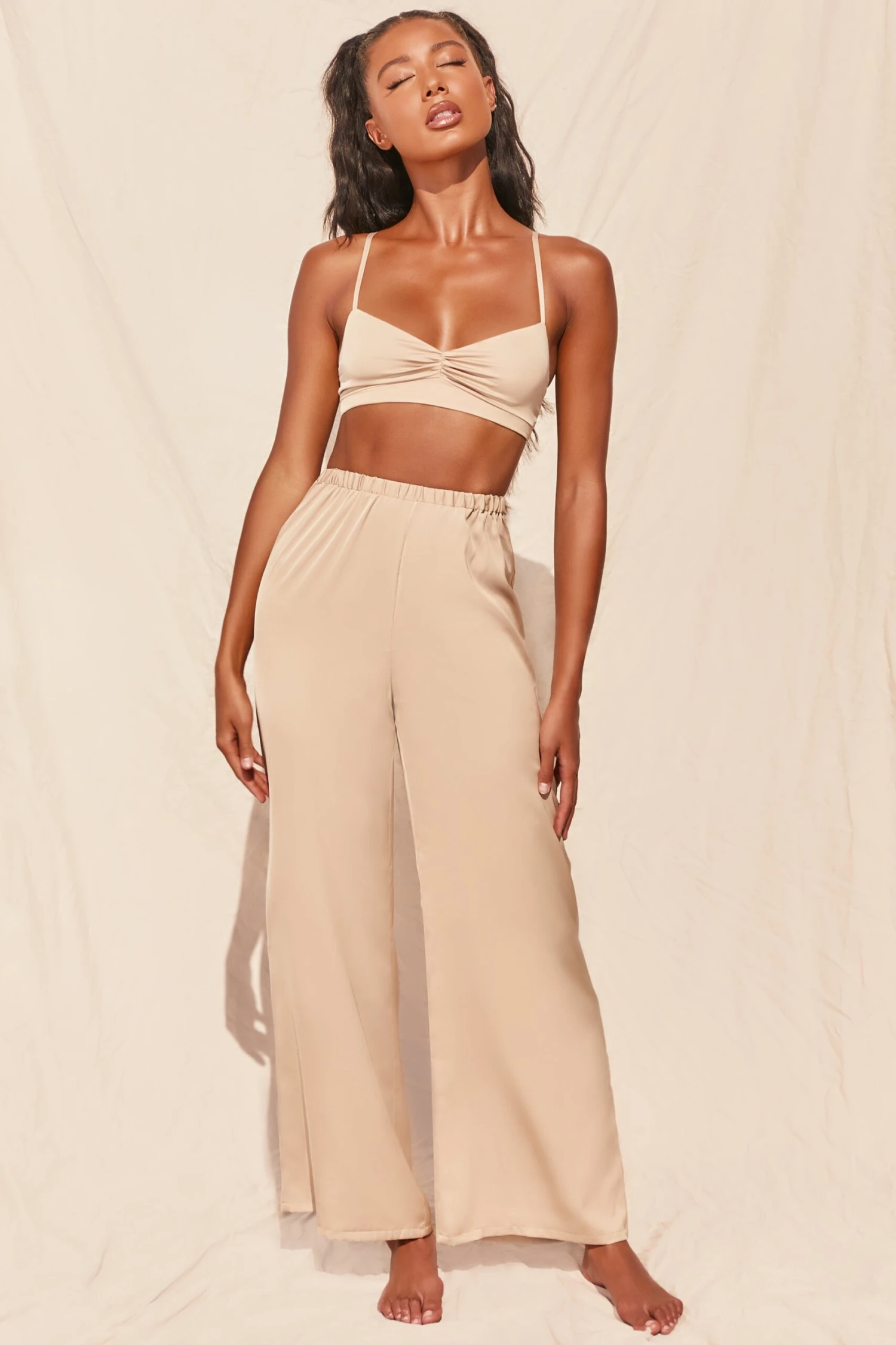 The style on everyone’s lips, our Famed satin bralet is not to be missed. Cut to a soft V neckline with delicate, adjustable shoulder straps, the ruched bust front was designed to flatter. Pair with the matching trousers for a set that will have you feeling famous, babe.