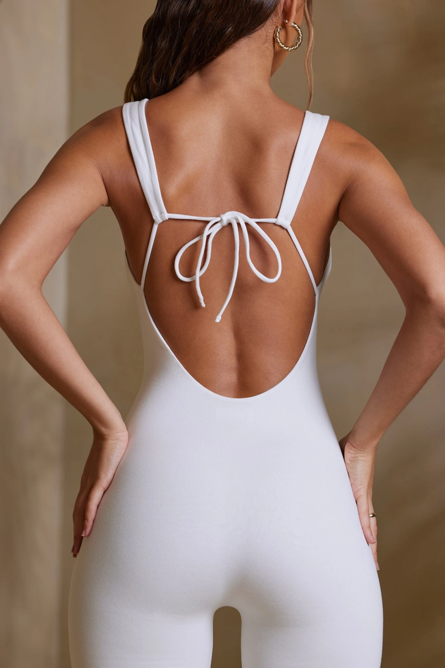 Meet your new wardrobe obsession, the Remi modal jumpsuit. Designed in our premium modal fabric that’s dual layered to provide a supportive, silhouette sculpting look, the Remi jumpsuit features a bust flattering straight neckline framed between two tapered shoulder straps. A full length design that hugs your curves before falling to a split flare trouser, the Remi jumpsuit is complete with a daring low curved back with delicate self tie back fastening. Super versatile and undeniably flattering, the Remi jumpsuit is available in two classic and easy to wear shades.