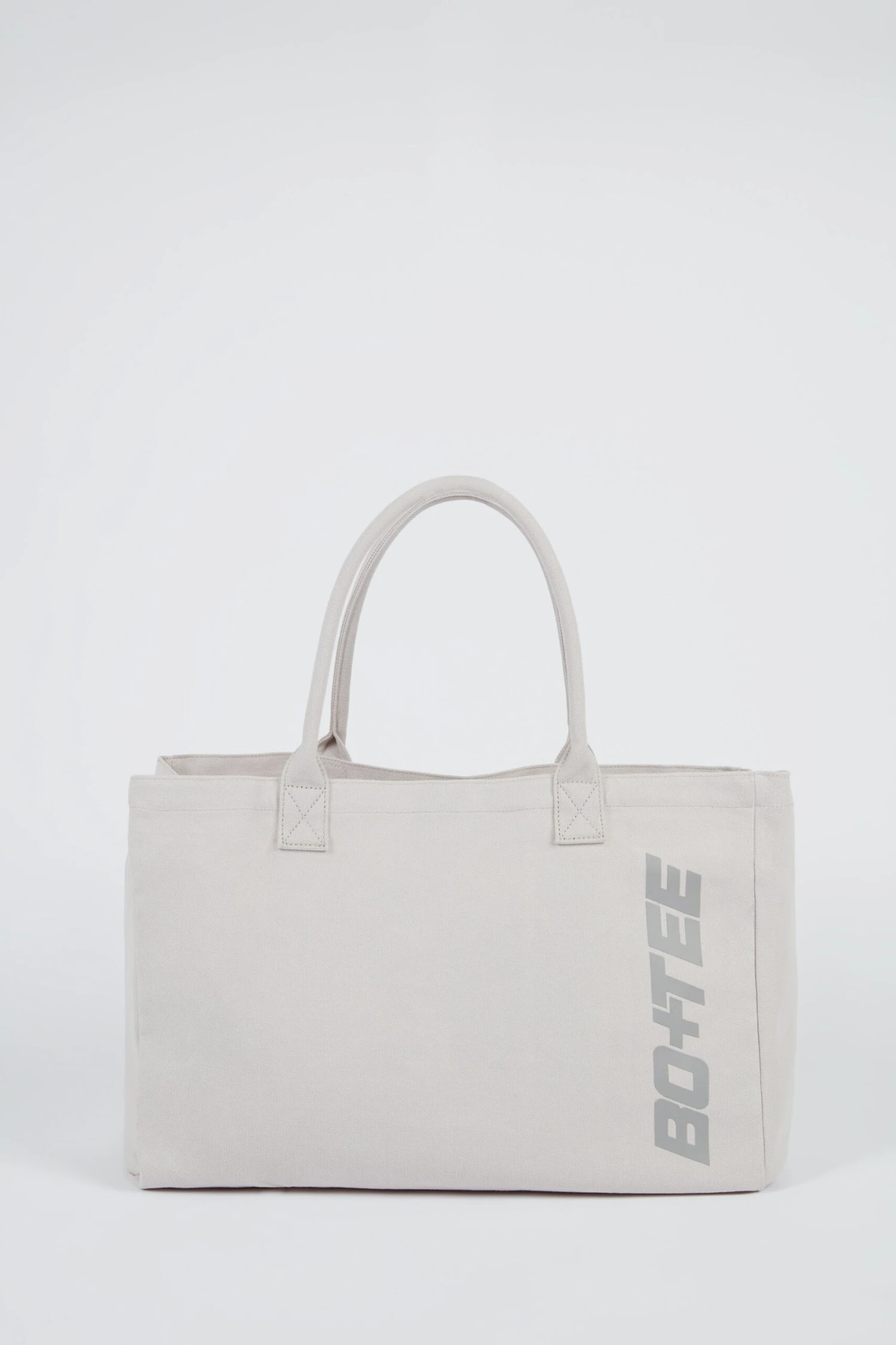 The Routine Tote Bag made from premium cotton canvas has our signature Bo+Tee branding printed on one side and dual handles. Whether you are heading to the gym or running errands the Routine Tote Bag is durable and spacious making it the ultimate lifestyle accessory.