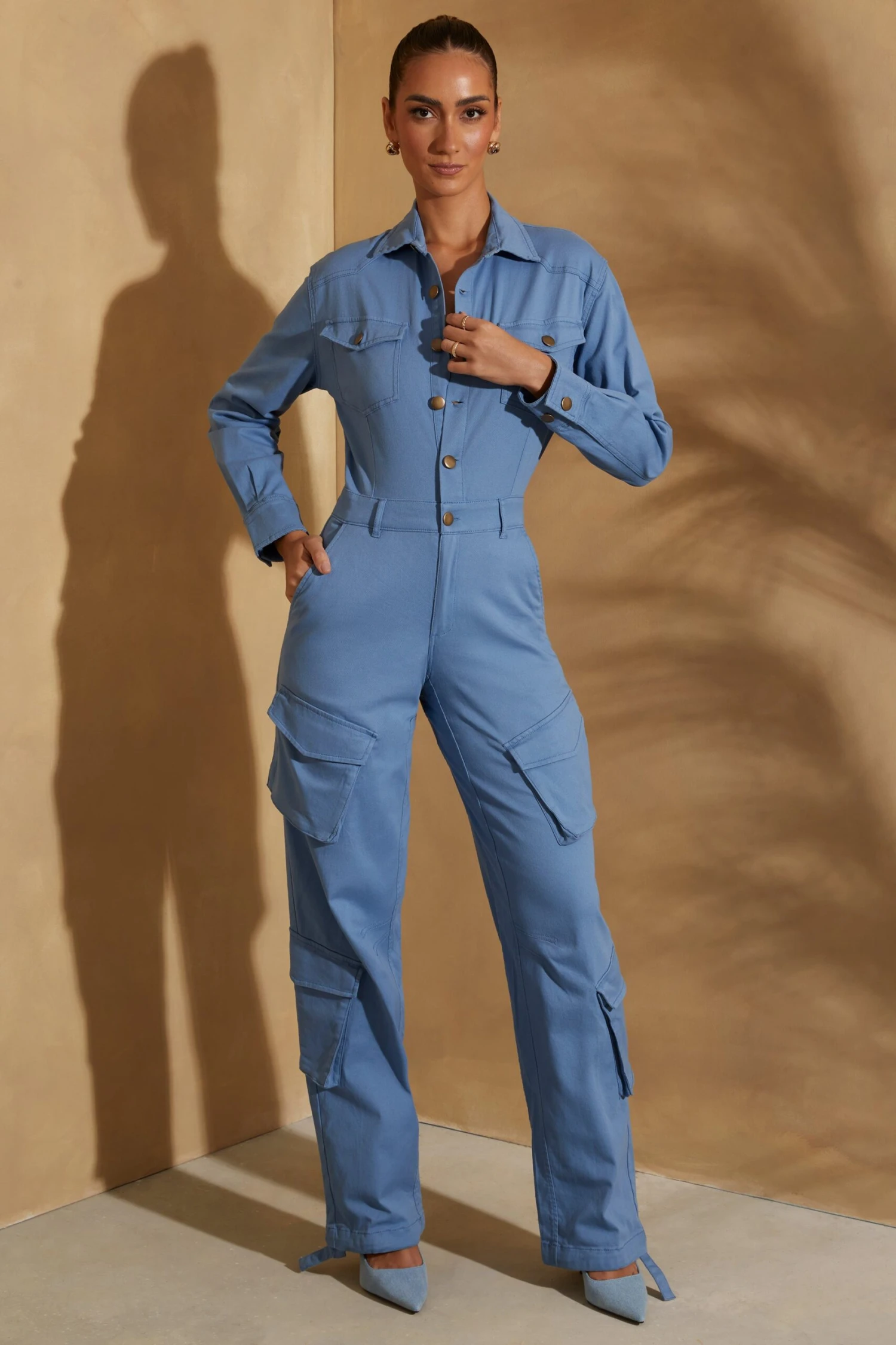 A super versatile jumpsuit perfect for your day to night wardrobe, you’ll be obsessed with Blake. Designed in our premium cotton/ twill fabric, the Blake cargo jumpsuit is a wide leg silhouette with side split pockets and multiple oversized pockets throughout the effortless design. With a relaxed fit top with long sleeves and standard shirt collar, the Blake jumpsuit is complete with button down closures at the front of the design. A timeless design that can be dressed up or down, you’ll love the Blake jumpsuit forever